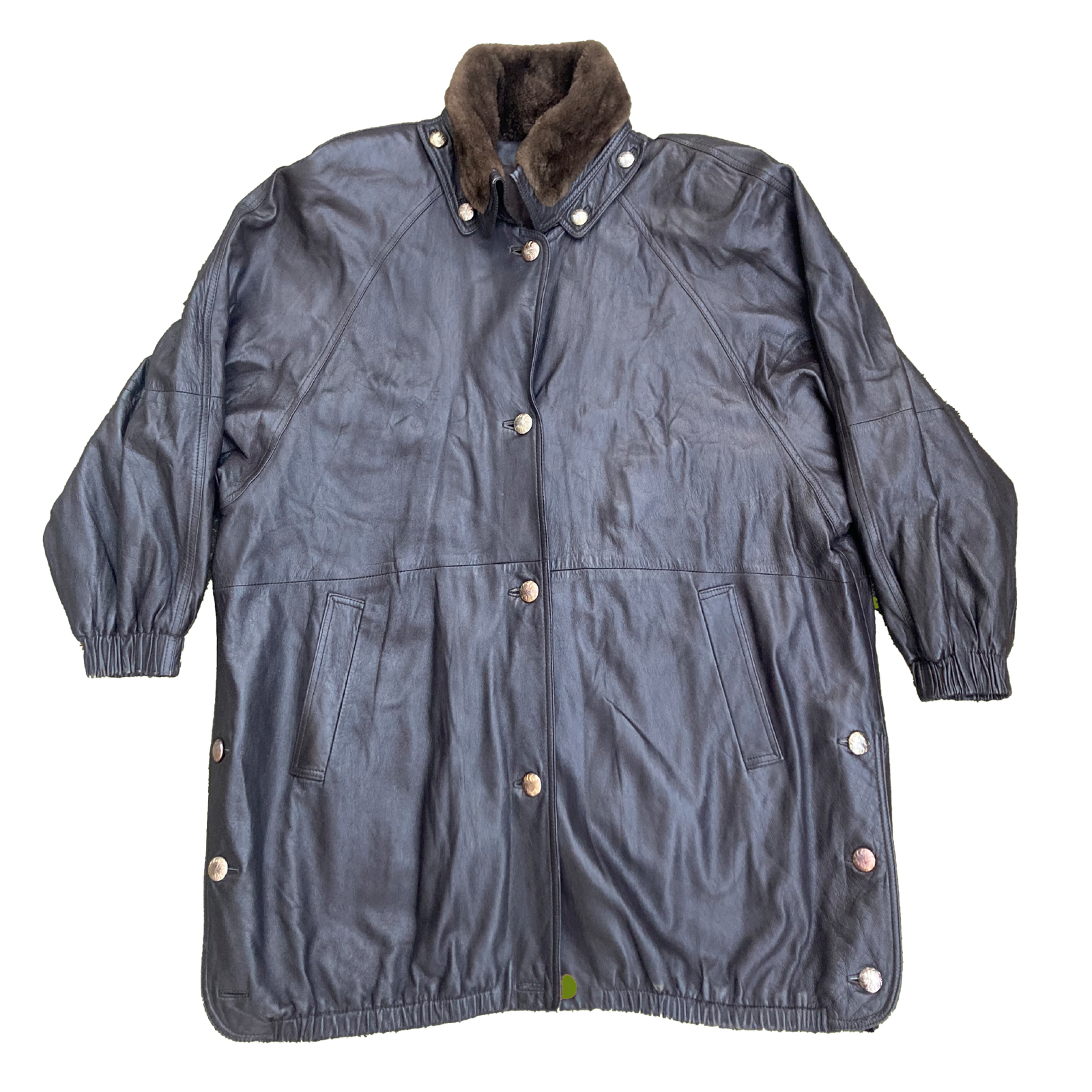 Manteau en cuir noir. Seconde main vintage.
