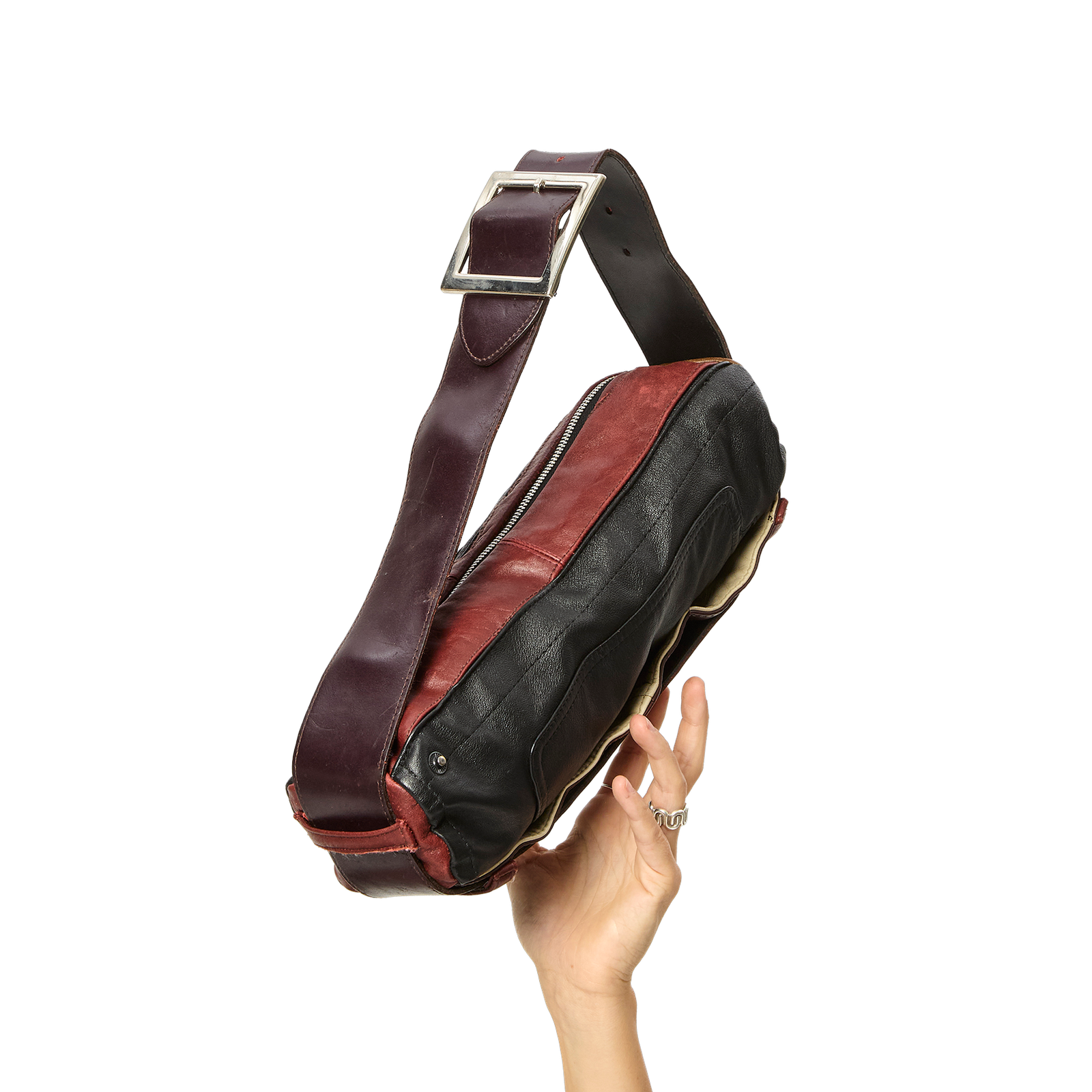 Pochette upcyclée en cuir. Design en collaboration avec Elia Alglave. Confectionnée à Coubron en Île de France par Ute Sander.