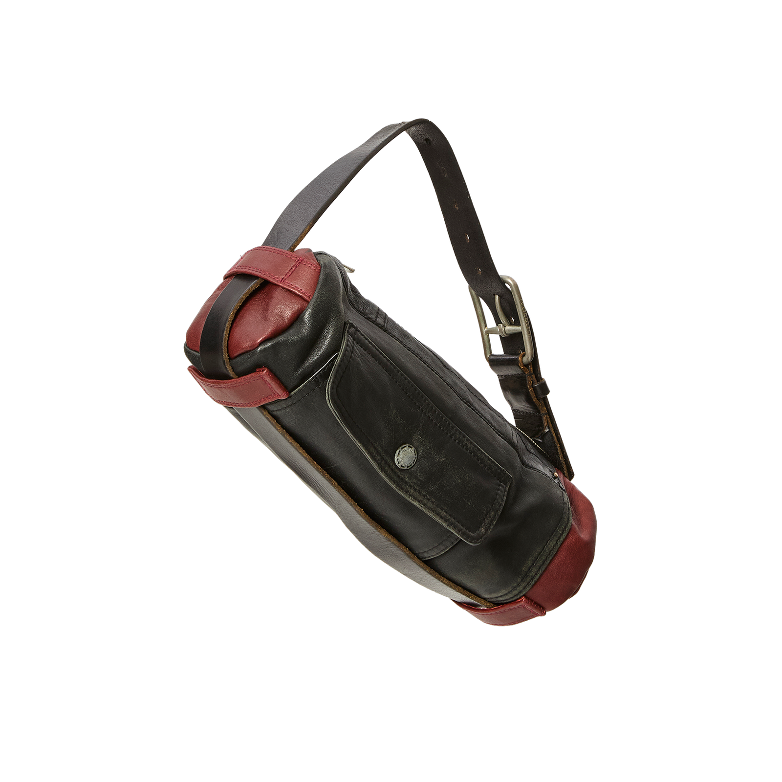Pochette upcyclée en cuir. Design en collaboration avec Elia Alglave. Confectionnée à Coubron en Île de France par Ute Sander.